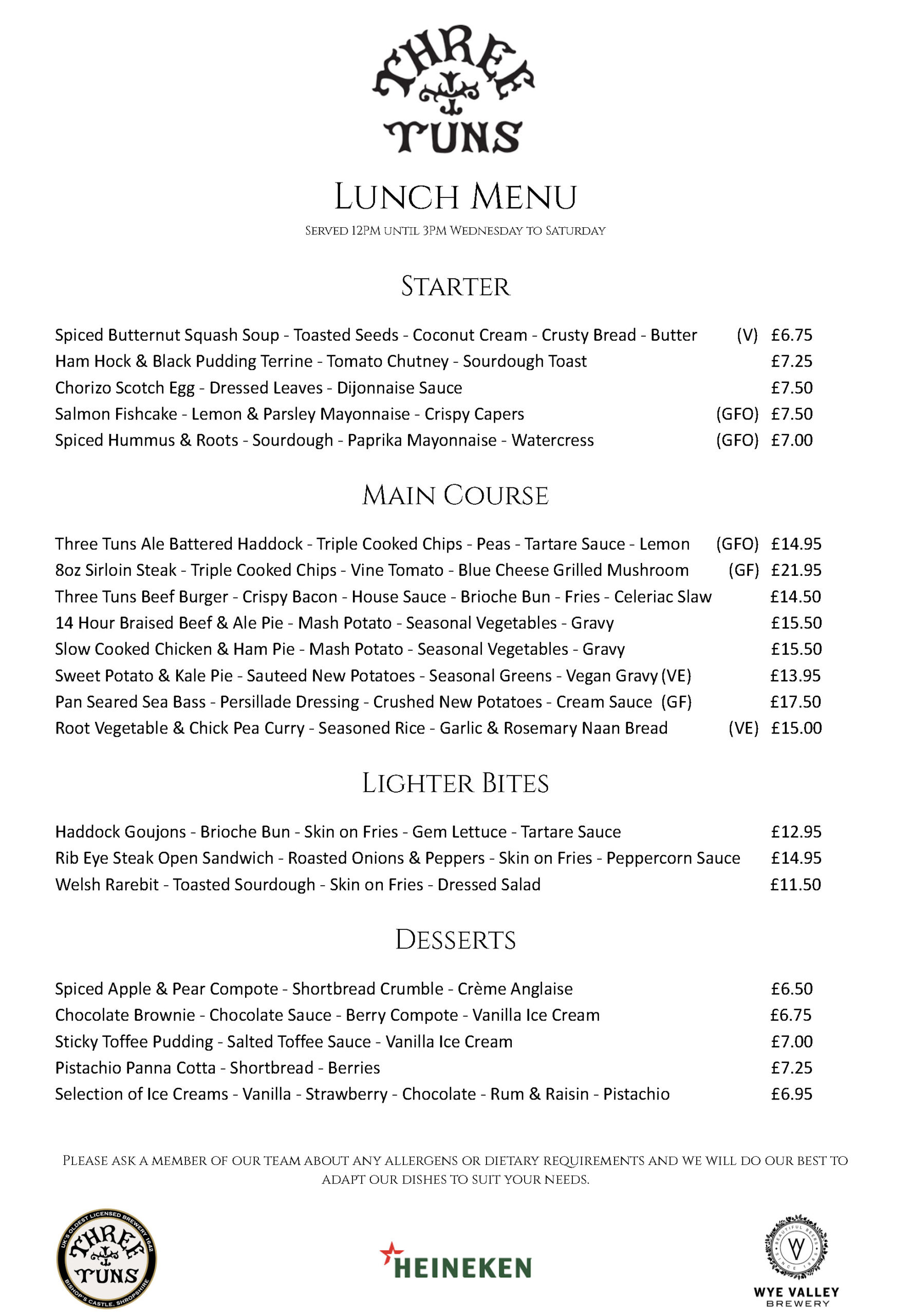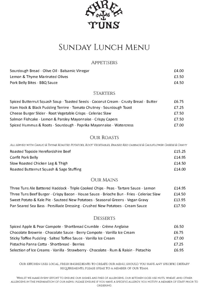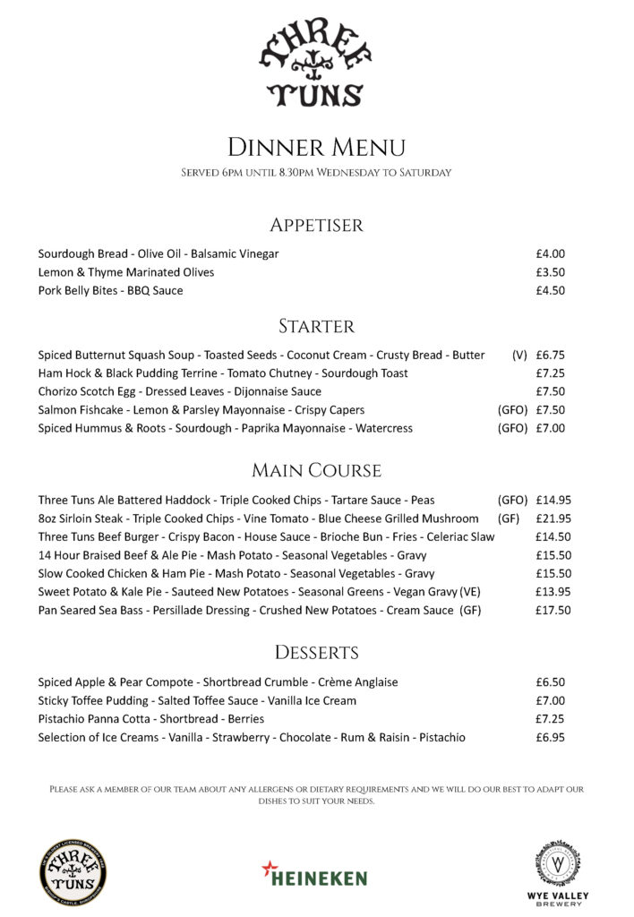 At The Three Tuns Inn, our menus are crafted to offer something for everyone.
